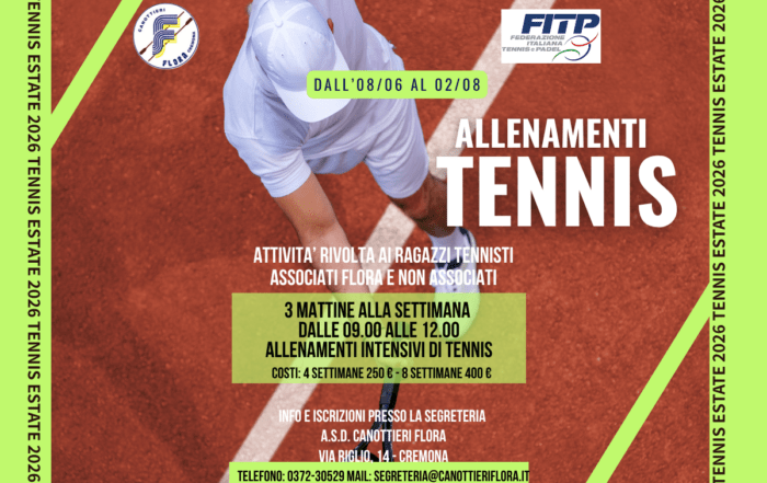 La Canottieri Flora organizza allenamenti intensivi di tennis rivolti a ragazzi tennisti, sia associati che non associati.Le attività si svolgono dall’8 giugno al 2 agosto, con tre mattine a settimana (dalle 9.00 alle 12.00). Il programma prevede sessioni tecniche e [...]